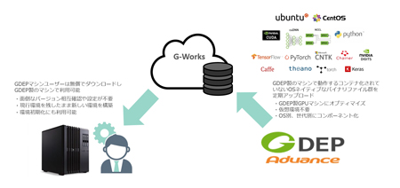 GDEPアドバンスが提供する「G-Works」は、Deep Learningに使用される主要なフレームワークを、各世代のNVIDIA GPUに最適化してビルドしたバイナリパッケージです。これらはDockerイメージと違い、コンテナ化されていないOSネイティブなバイナリファイル群として構成されています。