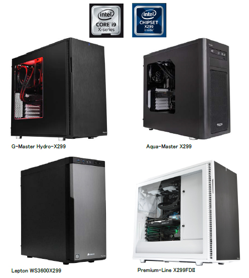 Skylake-X Refresh搭載4機種は、デュアル水冷ゲーミングモデル「G-Master Hydro-X299」、水冷モデル「Aqua-Master X299」、ワークステーション「Lepton WS3600X299」、高品質プレミアムモデル「Premium-Line X299FDII」で、インテル Core i9-9820Xおよび、インテル Core i9-9900Xが選択できるようになります。標準CPUはいずれもインテル Core i9-9820Xとし、標準構成価格は下記になります(価格は税込)。なお、従来どおり受注後7営業日での出荷が目安となります。