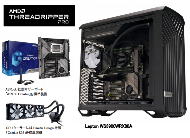 確かな品質でハイパフォーマンスPCの製造を行うパソコンメーカーの株式会社サイコム(本社:埼玉県八潮市/代表取締役:河野 孝史)は、科学技術計算、構造解析、3Dレンダリング、シミュレーション、AIディープラーニングなど様々な高度計算を必要とする環境において、圧倒的な高速化を実現するプロフェッショナル向けのワークステーション「Leptonシリーズ」に、AMD Ryzen™ Threadripper™ PRO 5975WXプロセッサーを標準搭載したフラッグシップ「Lepton WS3900WRX80A」を追加し本日9月1日(木)より販売開始します。