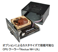 第12世代インテル® Core™ プロセッサー対応のB660チップセット搭載マザーボードを装備する本製品は、オプション選択によるカスタマイズ性にも注力し、ストレージには2.5インチSSDや最新の高速M.2 SSD、CPUクーラーには高性能CPUグリス「NT-H1」が付属した「Noctua NH-L9i」も選択可能としております。