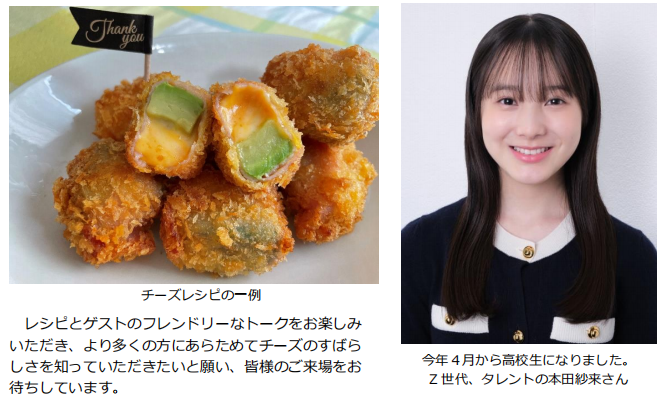 「お酒にもご飯にもピッタリの、チーズをたっぷり使った居酒屋レシピ」、「海苔で健康推進委員会×チーズのコラボ企画」などの特別セミナーをはじめ今年で第12回目となる「チー1 グランプリの表彰式」など、盛りだくさんの新企画で、様々な角度からチーズの魅力をご紹介いたします。ゲストとして、本田紗来さん、峰竜太さん、NHK「きょうの料理」でおなじみの講師きじまりゅうたさんの出演が決定しています。