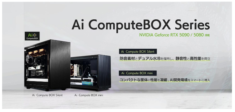 静音水冷設計とコンパクト高密度設計の高性能AIワークステーション「Ai Compute BOX シリーズ」を発表~ 静音性を極めた「Silent」と、省スペースを追求した「mini」をラインアップ ~